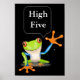 Hoch Fünf Humorvolles Poster mit niedlich orangefarbenem, blauem und grünem Frosch. Gib das bei dir zu Hause oder an deinem Arbeitsplatz und sieh, wie viele Leute wirklich fünf deinen Frosch hoch haben. Ideal für Ferienhäuser, Restaurants oder andere öffentliche Orte.