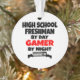 Dieses Textdesign mit der trendigen Phrase "High School Freshman by Day Gamer by Night" eignet sich hervorragend für jeden Friseur, der Computerspiele oder Videospiele spielt.