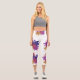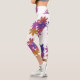 White leggings with vibrant hand-drawn flower pattern in red, blue, purple and mustard.