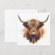 Highland Coo Greeting Card - single highland cow- face on with horns and white background.