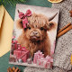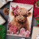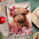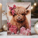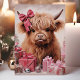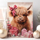 Feiern Sie den Urlaub mit dieser bezaubernden Karte mit einer niedlichen Hochlandkuh, die mit einem rosa Bogen geschmückt ist und von wunderschön verpackten Geschenken umgeben ist. Ideal, um Tierliebhabern und jenen, die ein lustiges, skurriles Weihnachtsdesign genießen, herzliche Urlaubsstimmung zu schenken.