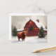 Highland Cow Red Barn Weihnachtskranz Postkarte