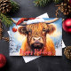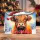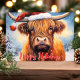 Feiern Sie die Urlaubssaison mit dieser bezaubernden Weihnachtskarte mit einer bezaubernden Hochlandkuh mit einem Weihnachtsmütze. Die festliche Szene umfasst schneebedeckte Bäume und einen fröhlichen "Happy Holidays" Gruß in Rot. Diese Karte ist perfekt, um Ihren Feiertagsgruß mit einem Hauch von Laune und Wärme zu erfüllen. Sie wird jedem ein Lächeln ins Gesicht bringen. Ideal für Tierfreunde und für Liebhaber von rustikalem Charme.