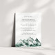 Partagez des détails mariages avec élégance grâce à cette carte d'enceinte magnifiquement conçue de la collection Highland de Redwood & Vine Design Co. Avec ses montagnes d'aquarelle verte brumeuses et son texte serif classique sur un arrière - plan blanc immaculé, c'est l'encart parfait pour les mariages rustiques, alpins ou naturels. Idéal pour fournir des informations sur l'hébergement, des conseils de voyage, ou des temps forts avec style.
