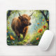 Highland-Rind im Wald mit Wildblumen Mousepad
