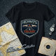 Highways & High Notes blends open-road freedom with pure rock energy. Built around a bold chrome-inspired shield emblem, the design features a stylized highway forming a subtle guitar silhouette — a tribute to nights spent driving with the music loud and the windows down.