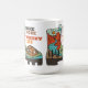 Hike More Worry Less camping mug. Gift this funny mug to the hiker / camper in your life. This design features a beautiful camping scene inside of a hiking boot.