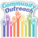 Schöne Community Outreach Design für Gemeinden, um ihren Bürgern mit Regierung und Non-Profit-Programme zu helfen. Ein niedlicher Regenbogen von Händen, der andere hilft.