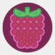 Diese lustige Pop Art Himbeere Illustration zeigt eine leuchtend rote und lila Cartoon Himbeere mit einem grünen Stiel und Blätter! Dieses originelle Himbeervektor Kunstdesign ist das ideale Geschenk für jeden, der Beeren und Essenskunst Lieben!