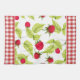 Dieses Land/Bauernhaus-Design verfügt über eine Tafel von Aquarellbeeren auf dem Hintergrund roten Gingham