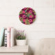 Himbeeren in Aquarellfarbe: rote Fruchtmuster. Große Wanduhr