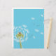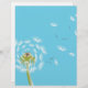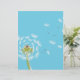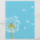 Die Blume aus blau-weiß-weiß-weiß-blauen Leuchtern mit einem Kunstdesign einer wilden Dandelion-Blume, die vor einem stilvollen, himmelblauen Hintergrund im Wind weht. Whimsical und niedlich.