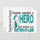 Ehren Sie und erinnern Sie sich an Ihren Held im Himmel, während das Teilen der wichtigen Mitteilung des Gebärmutterkrebsbewusstseins mit unserem inspirational Himmel Shirts eines Heldes, Geschenke und die Waren, die kontrastierenden Text-Schriftart und ein ins Auge fallendes aquamarines kennzeichnen und weißes Gebärmutterkrebsbewusstseinsband, das mit flatternden Engelsflügeln geschmückt wurde benötigte.