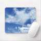 Seifenblasen schweben im sommerblauen Himmel mit Wolken.