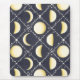 Dieses ätherische, sich wiederholende Muster zeigt eine himmlische Abbildung des bezaubernden Mondzyklus von Neu bis Vollständig, jede Phase umgeben von einem zarten Diamantgitter von Sternen und Reben. Set gegen ein tiefes Mitternachtsblau, lädt dieses Monddesign zum Wundern des Kosmos und der tiefen Stille der Nacht ein.