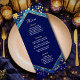 Set Sie mit diesem Chic Celestial Starry Night Blue Wedding Menu. Dieses Menü mit seinem tiefblauen Hintergrund, der mit funkelnden Sternen und himmlischen Akzenten geschmückt ist, verströmt nächtliche Eleganz und Romantik. Die zarte, moderne Typografie präsentiert jeden Platz in einem klaren, stilvollen Layout und macht ihn sowohl funktional als auch schön. Dieses Menü eignet sich perfekt für mondbeleuchtete Empfänge oder Feiern mit Sternenhimmel und verleiht der Tischdekoration eine raffinierte himmlische Touch.