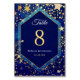 Fügen Sie Ihrem Empfang eine kosmische Touch mit diesen chic Celestial Starry Night Blue Wedding Tischnummern hinzu. Jede Karte ist mit einem tiefblauem marineblauen Hintergrund ausgestattet, der mit glänzenden Sternen bestreut ist und den Zauber eines Sternenhimmels weckt. Elegante Typografie und himmlische inspirierte Details schaffen ein raffiniertes und dennoch skurriles Aussehen, das perfekt dazu geeignet ist, die Gäste stilvoll an ihre Tische zu führen. Diese Tischnummern eignen sich ideal für himmlische, nächtliche oder romantische Hochzeiten am Abend und sorgen für ein traumhaftes und abgestimmtes Ambiente.