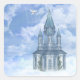 eine Kirche am Himmel mit einer Friedenstruppe - eine schöne Himmelsszene mit Wolken, eine Kirche, eine weiße Friedenstruppe