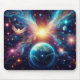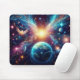 Computermousepad mit Engeln. Bilder von Engeln im Himmel über der Erde mit Galaxien im Hintergrund.