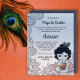 Namkaran Baby Naming Zeremonie Einladung - Namkaran' (Sanskrit 'nam' = Name; 'karan' = Schöpfung) ist die offizielle Hindu Baby Namensfeier. Diese schöne Einladung zeigt eine kleine Krishna auf blauem Hintergrund und Mehndi-Stil-Muster. Sie können die Rückseite der Karte ändern, um das Bild durch das Bild Ihres Babys zu ersetzen.