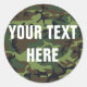 Camouflage Background pattern für Ihren benutzerdefinierten Text auf Knopf, Aufkleber oder Magnet. Camouflage Muster in Grüntönen und Braun. Ändern Sie den Text einfach in Ihren eigenen Text und bewegen Sie ihn bei Bedarf nach oben oder unten.