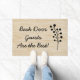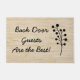 Diese niedliche Fußmatte kennzeichnet einen rustikalen Blick, Leinenleinwandhintergrund und ein modernes Schwarzes blühen dass Blicke ein bisschen wie Niederlassungen mit KreisBlätter. Die Matte sagt, dass "Hintertür-Gäste das Beste" im schwarzen Text sind und eine große Weise sind, Ihre nahe und vertraute Familie und Freunde zu begrüßen, die automatisch gerade zu Ihrer Hintertür gehen!