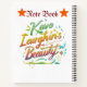 Das Notebook-Cover zeichnet sich durch einen skurrilen, handgezeichnet Schriftart aus, der den Zauber "Rett Earth's Beauty" in einer Vielzahl von hellen Farben ausdrückt. Die Buchstaben sind von farbenfrohen Blumenbildern umgeben, die ein fröhliches und einladendes Design schaffen