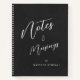 Minimalistischer schwarzer Hintergrund mit moderner Schriftzeichen "Notizen und Musings", um Ihre kreativen Ideen und Gedanken inspirieren, personalisiert mit Ihrem Namen auf der Vorderseite und Ihrem Monogramm mit Namen auf der Rückseite. Fügen Sie Ihre eigenen Informationen hinzu, indem Sie den Link "Diese Vorlage personalisieren" befolgen.