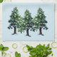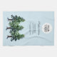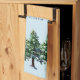 Fügen Sie Ihr Logo Custom Text Pine Tree Werbeaktion Küchentücher. Wasserfarbene Kiefernbäume mit Schnee auf einem hellblauen Hintergrund. Fügen Sie Ihr Logo in die Vorlage ein und passen Sie den Text, den Firmennamen, die Adresse und die Kontaktinformationen an. Werbeaktion oder Schenkung für Ihre Kunden und Geschäftspartner.