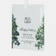 Hinzufügen von Logo-Custom Text Schnee Winter Baum Werbeaktion Glas Ornament. Schöne Winterbäume mit Schnee auf jeder Seite. Fügen Sie Ihr Logo in die Vorlage ein und passen Sie den Text, den Firmennamen, die Adresse und die Kontaktinformationen an. Werbeaktion oder Schenkung für Ihre Kunden und Geschäftspartner.