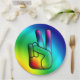 Ein grafisches Design eines Regenbogenschildes von Künstler/Designer Charmaine Paulson auf einer Party-Platte.
