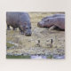 Zwei Pygmäen ruhen und die dritte nimmt und Interesse an zwei kanadischen Gänsen.