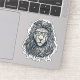 The King of the Jungle just got a whole lot smarter! This unique, hand-drawn style sticker features a majestic lion with a flowing mane, looking intently through a stylish pair of hipster glasses.