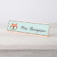 Niedliche und lustige Illustration eines roten Fuchses mit einem übergroßen Brillenpaar personalisiert mit einem spielerischen handgeschriebenen Schriftart, der sowohl für Kinder als auch für Lehrerschreibtische geeignet ist.