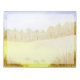 Eine Miniatur Aquarellmalerei mit einem weißen Schwanz, das das frische, frühlingshafte Gras am Rande einer Weide genießt.