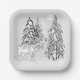 Hirsch, Winter, Wald, Weihnachtsbäume, einfarbig Pappteller