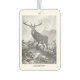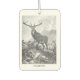 Schöne Schwarz-Weiß-Vintage Darstellung des Hirsches in den hohen Bergen. Auf einem Reh mit Geweih folgen zwei weitere Hirsche auf der Seite eines Berges mit Bergen in der Ferne. Personalisieren Sie Ihre Nachricht mit Ihrem Namen oder Ihrer Nachricht in schwarzem Schriftart. ca. 1890er Thiele