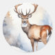 Hirsche im Schneewald Weihnachtsbaumen Wasserfarben Klassischer Rundsticker