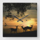 Das ist eine schöne Uhr mit Hirschen im Sonnenuntergang, die die Vögel beobachten. Wird in jeder Hütte oder Lodge großartig aussehen!