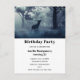 Eine Party Einladung Postkarte mit einem Foto eines Regalhirsches mit Geweih stehend in einem dunklen Wald. Rund um den Schnee fallen.