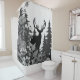 Das Hirsch kommt aus Kiefern und ist von Wildblumen umgeben, die sich durch eine einfache Wildtiergestaltung auszeichnen.