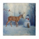 Hirsche und Happy Snowman Winterurlaubslandschaft Fliese