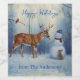 Hirsche und Happy Snowman Winterurlaubslandschaft Weinetikett