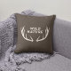 Ein braunes Kissen mit einer Darstellung der Hirschgeweihe und einem vollständig anpassbaren Text: "Wilde Natur" im rustikalen Stil! Fügen Sie Ihrer Zuhause-Dekoration eine Touch der Wildtierwelt hinzu!