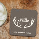 Untersetzer mit brauner Hirschantlerillustrierung und einem vollständig anpassbaren Text: "Wilde Natur" im rustikalen Stil auf braunem Hintergrund! Fügen Sie Ihren Cocktails mit Freunden oder der Familie eine Touch Wildnis-Natur hinzu!