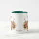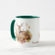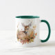 Diese Tasse hat ein hübsches Herbstbild in Aquarellfarbe, das mit einem zauberhaften gepunkteten Hirschgewächse zwischen braunen und orangefarbenen Herbstblättern besticht. Das Bild wird zweimal auf der Tasse gedruckt, mit Ihrem Namen oder Monogramm braun zwischen den Bildern.