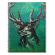 Schwarzes u. weißes Tintenzeichnen des Hirschkopfes auf einem monoprinted grünen backgroud