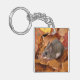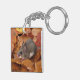 Hier ist ein süße Tier-Acryl-Schlüsselanhänger mit einer kleinen Hirschmaus auf Herbstblättern.