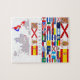 Gedenk Puzzle des Tages der Hispanität mit den Ländern, die sein spanisches Vermächtnis und die Landkarte des spanischen Reichs während 300 Jahre erhalten.