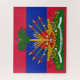 Wappen Haitis. Das haitianische Wappen wurde 1807 eingeführt und ist seit 1986 in seiner aktuellen Form erschienen. Es zeigt sechs drapierte Fahnen des Landes, drei auf jeder Seite, die sich vor einer Palme und Kanonen auf einem grünen Rasen befinden. Auf dem Rasen finden sich verschiedene Gegenstände, wie z.B. eine Trommel, ein Käfer, lange Gewehre und Schiffsanker. Über der Palme befindet sich eine kirchliche Kappe, die als Symbol der Freiheit platziert ist. Auf dem Rasen zwischen der Trommel und dem Band sollte es zwei Kettenstücke geben, deren gebrochenes Glied die kaputte Sklaverenkette symbolisiert. Das Band trägt das Motto: L'Gewerkschaft Fait La Force (Französisch, "Einheit ist Stärke"). Dies sollte nicht mit dem nationalen Motto Haitis verwechselt werden, das laut der haitianischen Verfassung "Freiheit, Gleichheit, Brüderlichkeit" lautet.